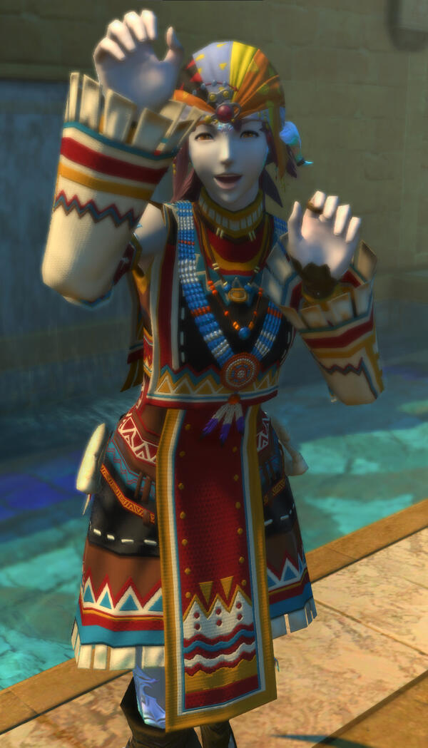 Biography: Born and raised in Limsa Lominsa. At a young age Ellie learned how to be a marauder as a way to defend herself on her travels. One day while training there was an accident, she now wears an eye patch over her left eye on most days. As she learned to live with just one eye she found that fishing on the seas and dancing could help her with balance. She felt a bit better and more confident that she could do things others did, She currently enjoys fishing and sailing from Limsa Lominsa's docks, dancing and once in awhile dungeon diving for some beautiful glamour. Now she enjoys her life relaxing on the seas and dancing to the beat of beautiful music.